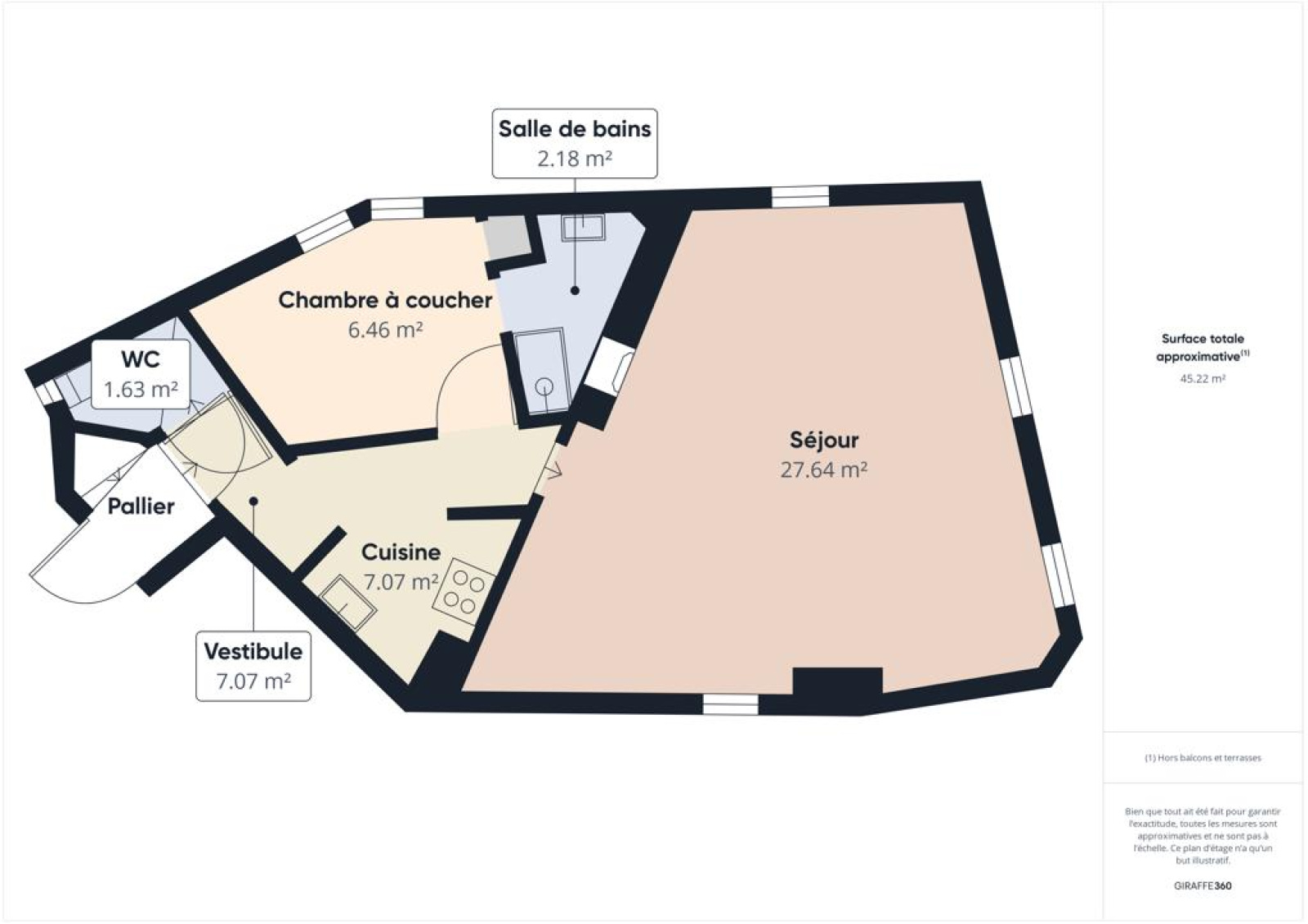 - Entrée : Une petite entrée spacieuse avec un escalier menant aux toilettes séparées.