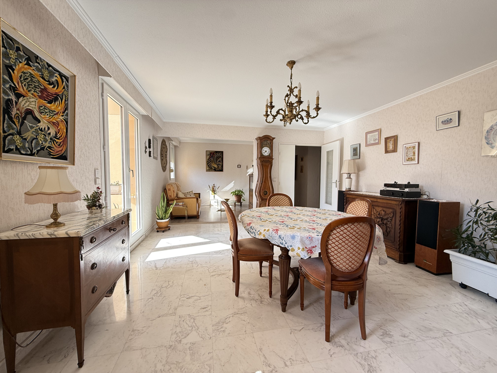 Situé au 3 Eme étage avec ascenseur d’une résidence de standing, ce bien séduit par ses volumes généreux et ses prestations de qualité. Le séjour de 24,40 m², doté d’un sol en marbre, bénéficie d’une belle luminosité et s’ouvre sur une terrasse de 9,60 m², offrant un espace extérieur agréable avec une vue dégagée.
