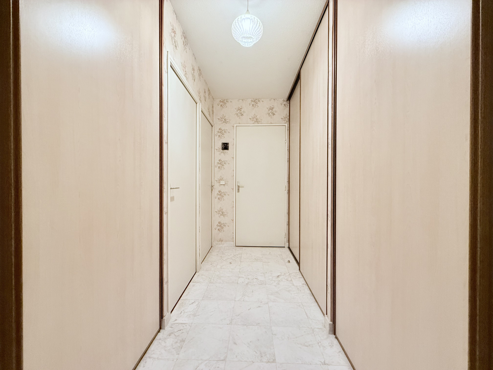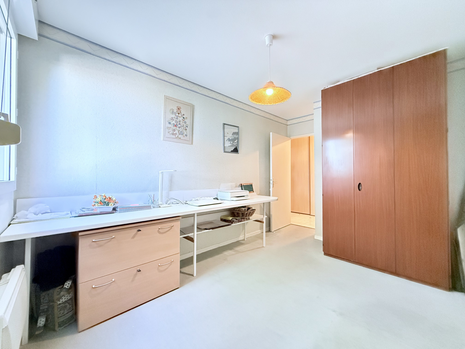 Un grand couloir doté de placards intégrés et un débarras situé dans l’entrée, équipé d’un cumulus et d’espaces de rangement supplémentaires, permettent une organisation optimale.