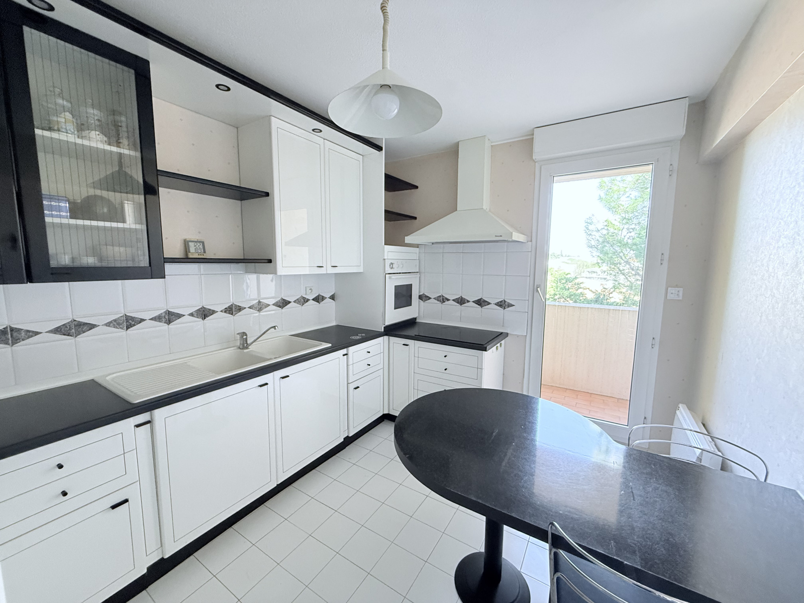 La cuisine, entièrement aménagée et équipée (four, hotte aspirante, plaque de cuisson, réfrigérateur, congélateur, meubles hauts et bas), est un espace fonctionnel et harmonieux. Elle dispose d’un accès direct à un balcon privatif de 2,89 m² donnant sur le jardin de la résidence.
