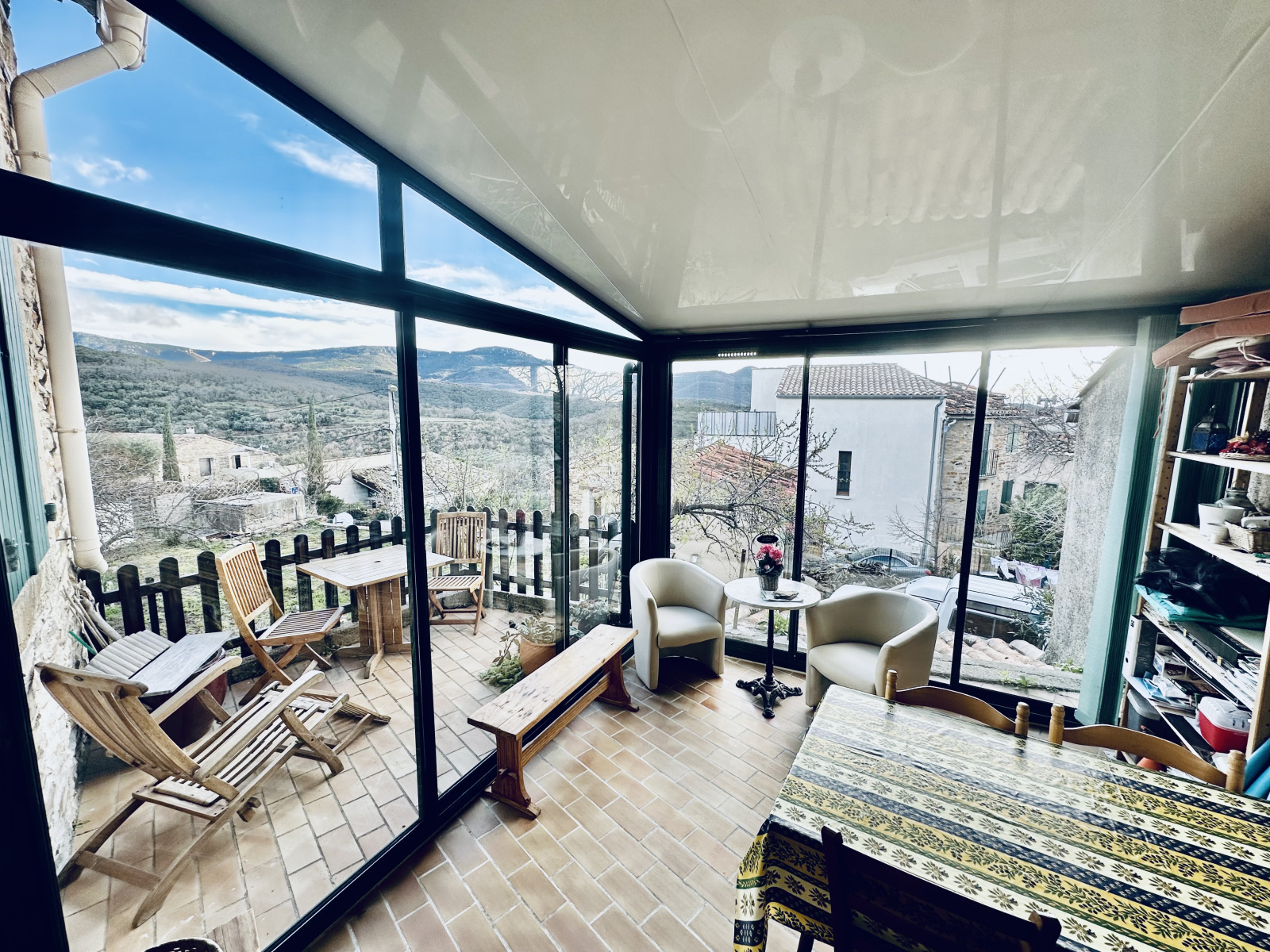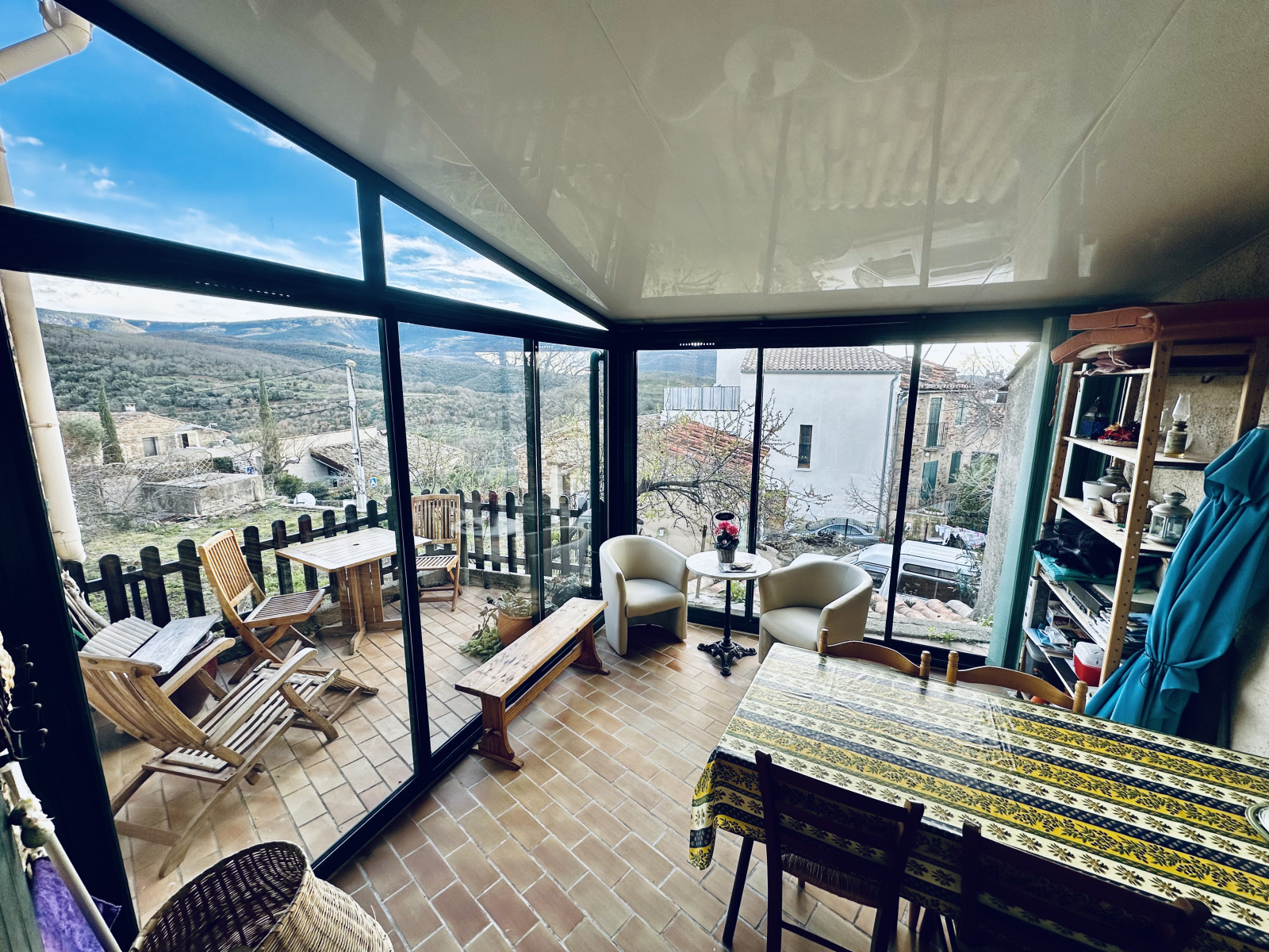 Au rez-de-chaussée, vous découvrirez une entrée accueillante menant à un séjour lumineux et à une cuisine équipée. La cuisine donne accès à une agréable véranda, idéale pour profiter des journées ensoleillées. Une terrasse adjacente offre un espace extérieur supplémentaire, parfait pour les repas en plein air et les moments de détente. Les menuiseries en simple vitrage sont équipées de moustiquaires, assurant un confort optimal.
