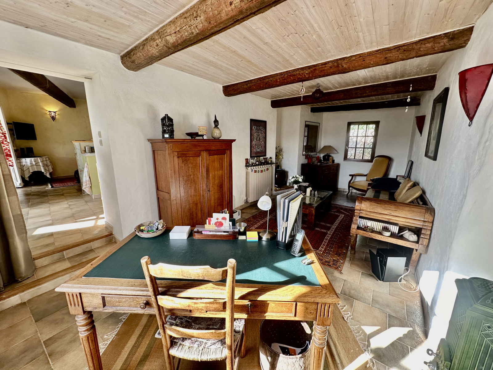 Le bien est chauffé par une chaudière à fuel, et pour votre commodité, il sera vendu avec une réserve importante de fuel. La production d'eau chaude est assurée par un ballon électrique d'une grande capacité. Deux caves sont incluses dans la vente, offrant un espace de stockage supplémentaire.