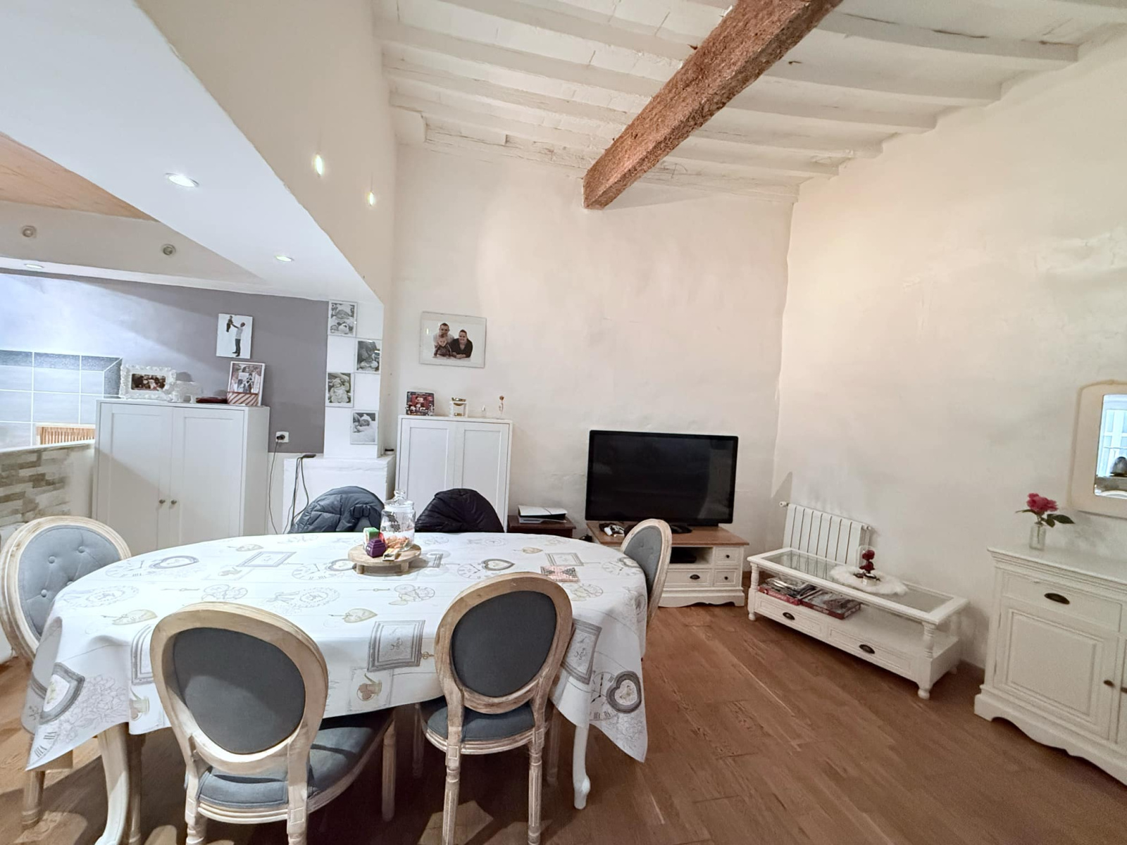 Ce bien se distingue par son charme authentique avec des poutres apparentes, créant une atmosphère chaleureuse et pleine de caractère.