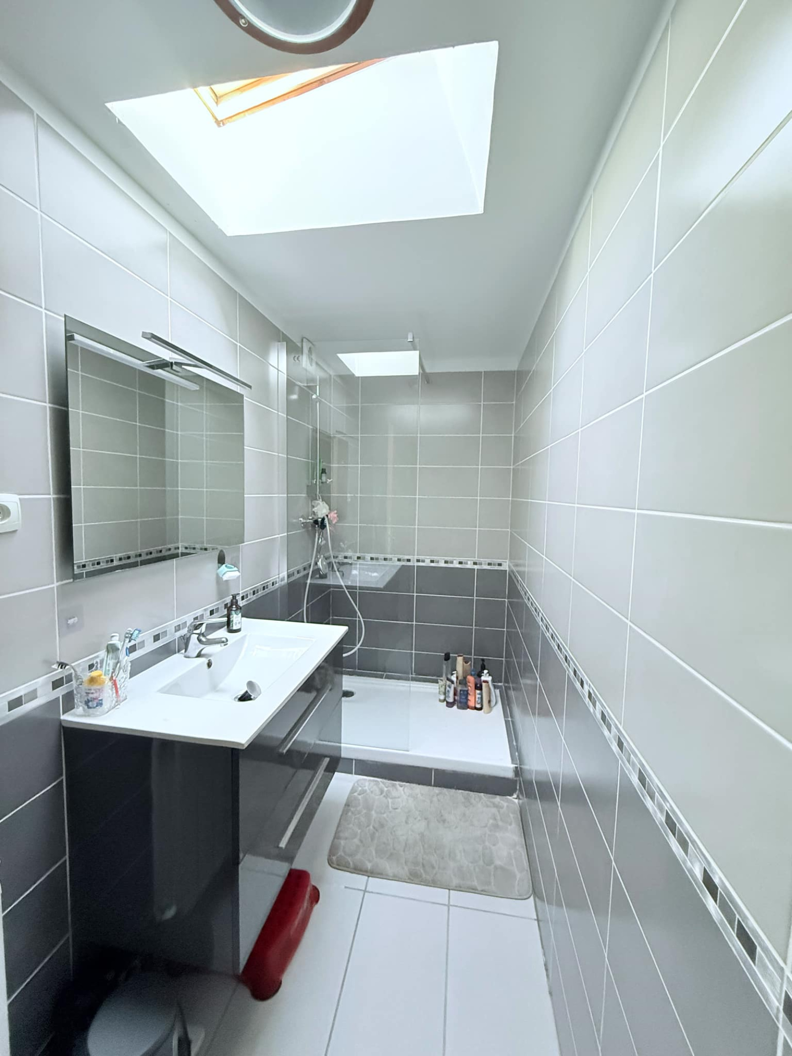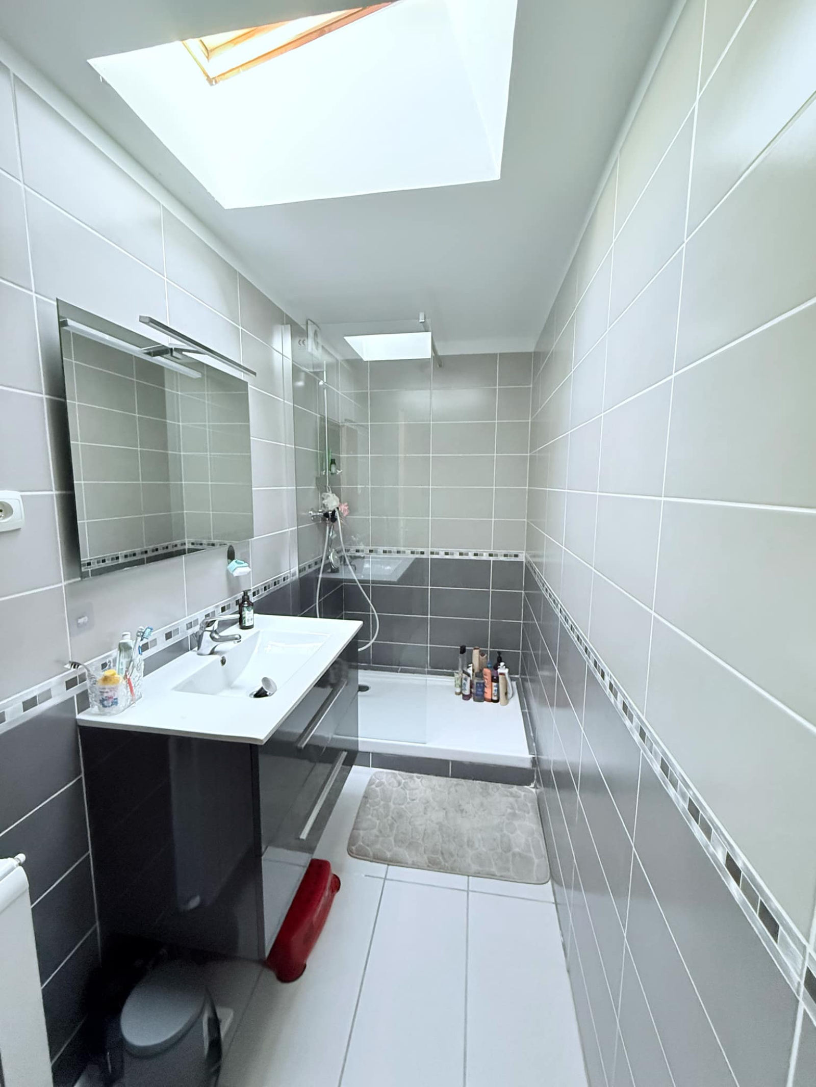 Le deuxième étage comprend deux chambres avec placards intégrés, un WC indépendant ainsi qu’une salle d’eau entièrement rénovée, dotée d’un vélux pour une aération naturelle optimale.