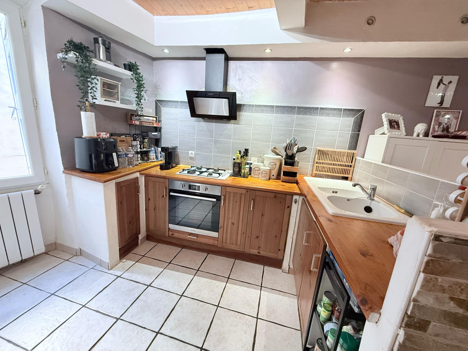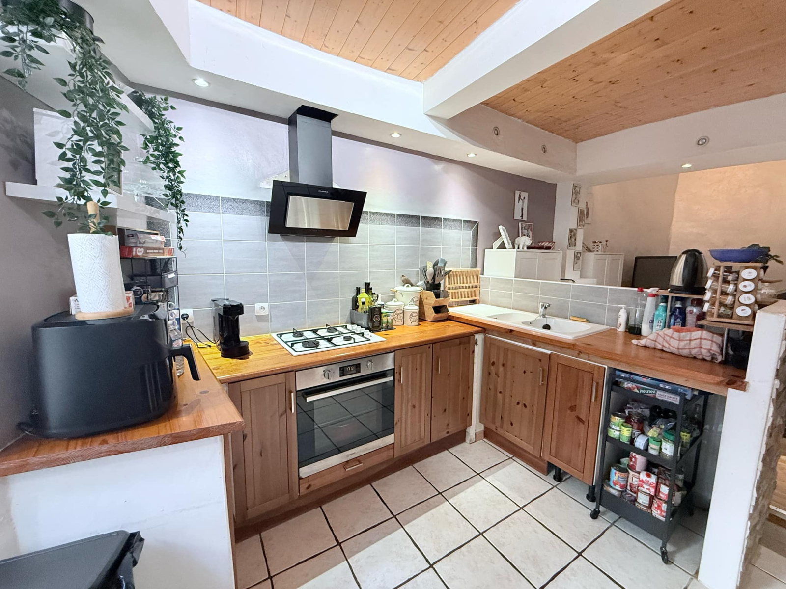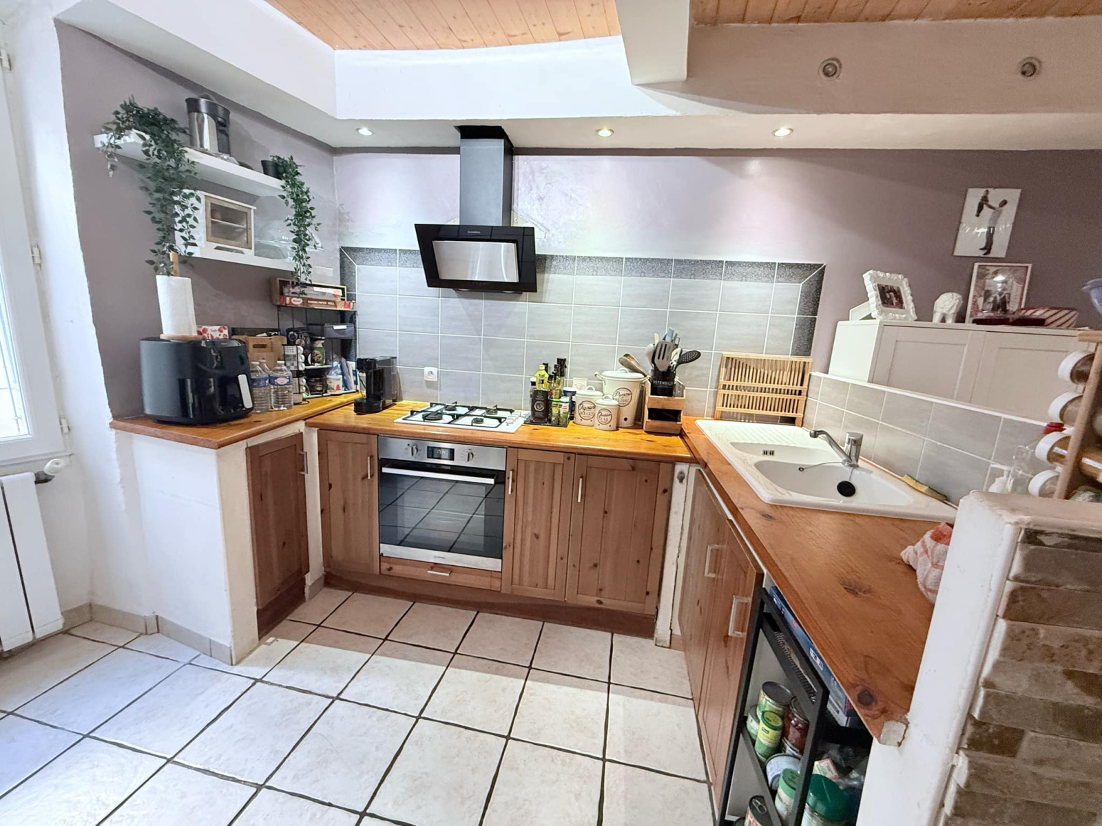 Au premier étage, la maison propose une cuisine américaine ouverte sur un séjour convivial, parfait pour vos moments en famille ou entre amis.
